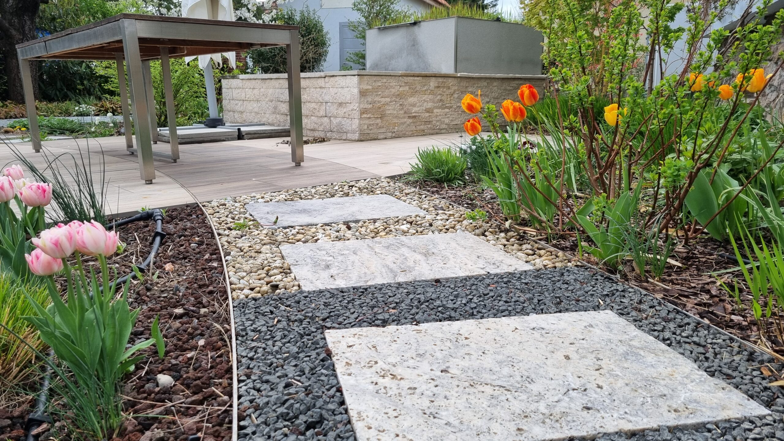 Wege, Plätze und Stiegenanlagen aus Stein stellen neben Ihrer Begehbarkeit auch wichtige Gestaltungselemente in der Gartenplanung dar.